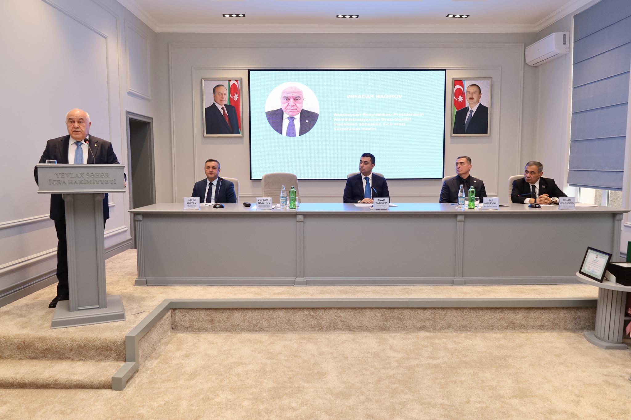 Yevlax Şəhər İcra Hakimiyyətində keçirilən hesabat iclasında Yevlax Şəhər İcra Hakimiyyətinin Başçısı Anar Tağıyev, Azərbycan Respublikası Prezidenti Adminstrasiyasının Ərazi-təşkilat məsələləri şöbəsinin 3-cü ərazi sektorunun müdiri Vəfadar Bağırov, Milli Məclisin deputatları İlham Məmmədov, Əli Hüseynli, YAP Yevlax rayon təşkilatının sədri Rafiq Əliyev, rayonun hüquq-mühafizə orqanlarının rəhbərləri, Şəhər İcra Hakimiyyəti Başçısı Aparatının məsul işçiləri, rayonun təhsil, səhiyyə, mədəniyyət və digər müəssisələrin rəhbərləri, şəhid ailələrinin üzvləri, qazilər və rayon ictimaiyyətinin nümayəndələri iştirak ediblər.