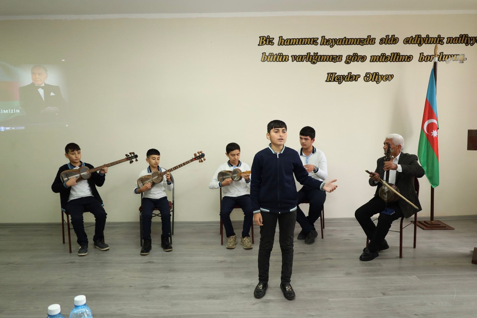 Sonda Aran qəsəbə 2 nömrəli tam orta ümumtəhsil məktəbin şagirdlərinin ifasında Ulu Öndər Heydər Əliyevə həsr olunmuş musiqilər və şeirlər səsləndirilmişdir.